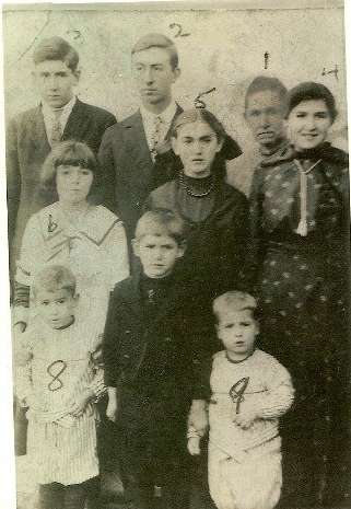 Standing l-r; Stanley,Paul,Albert,Wayne, Seated; Orpha,Minnie,Maida & Jon Patrick Hudgens 1950