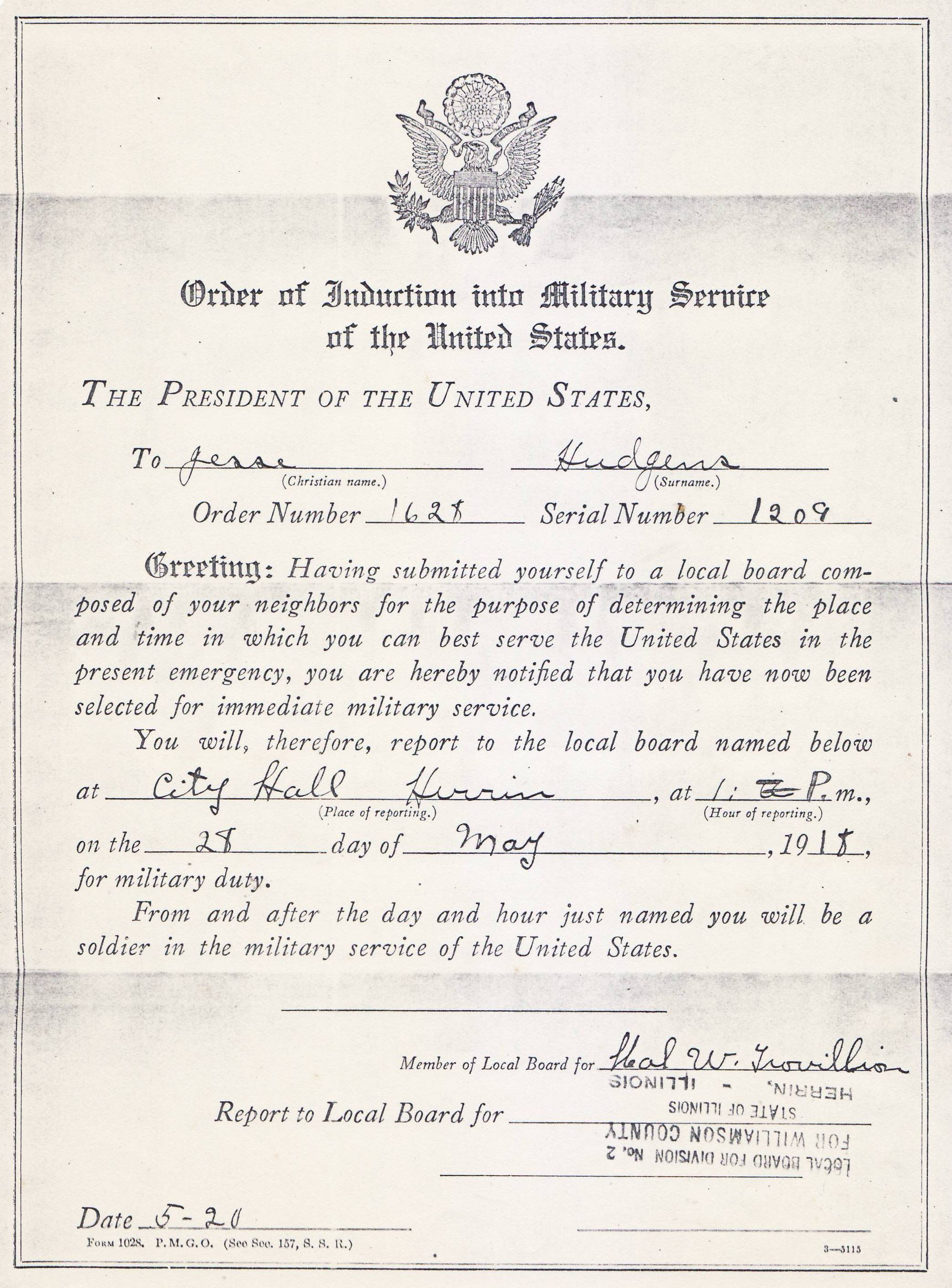 Jesse Hudgens Military Certificate